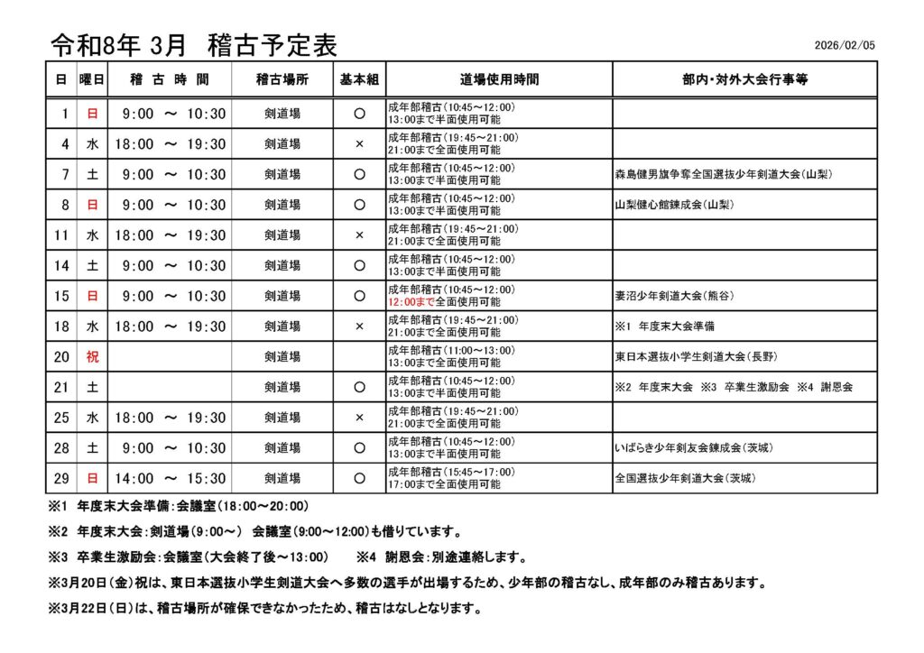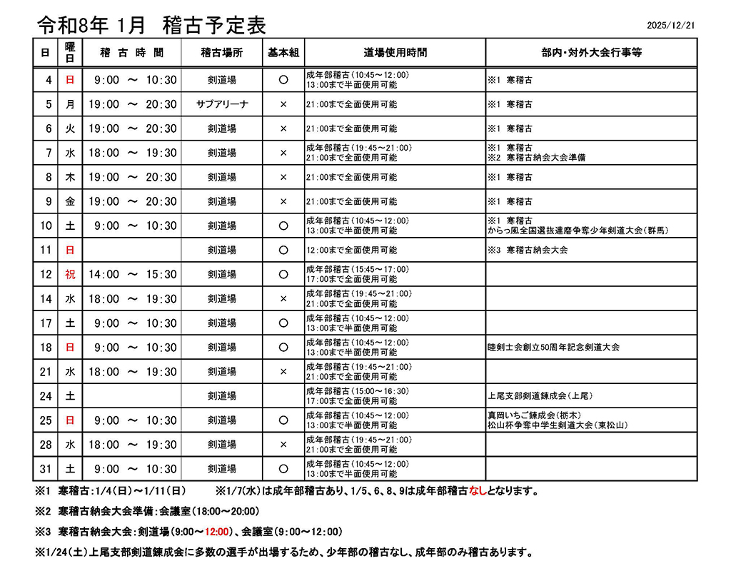 稽古予定表