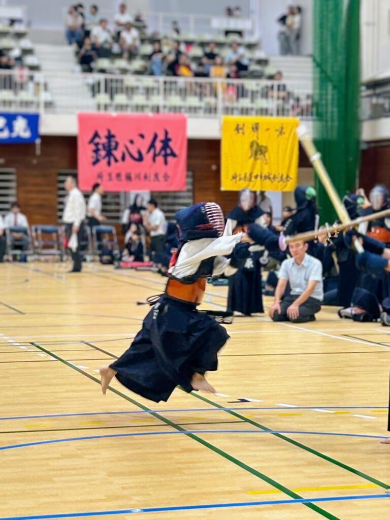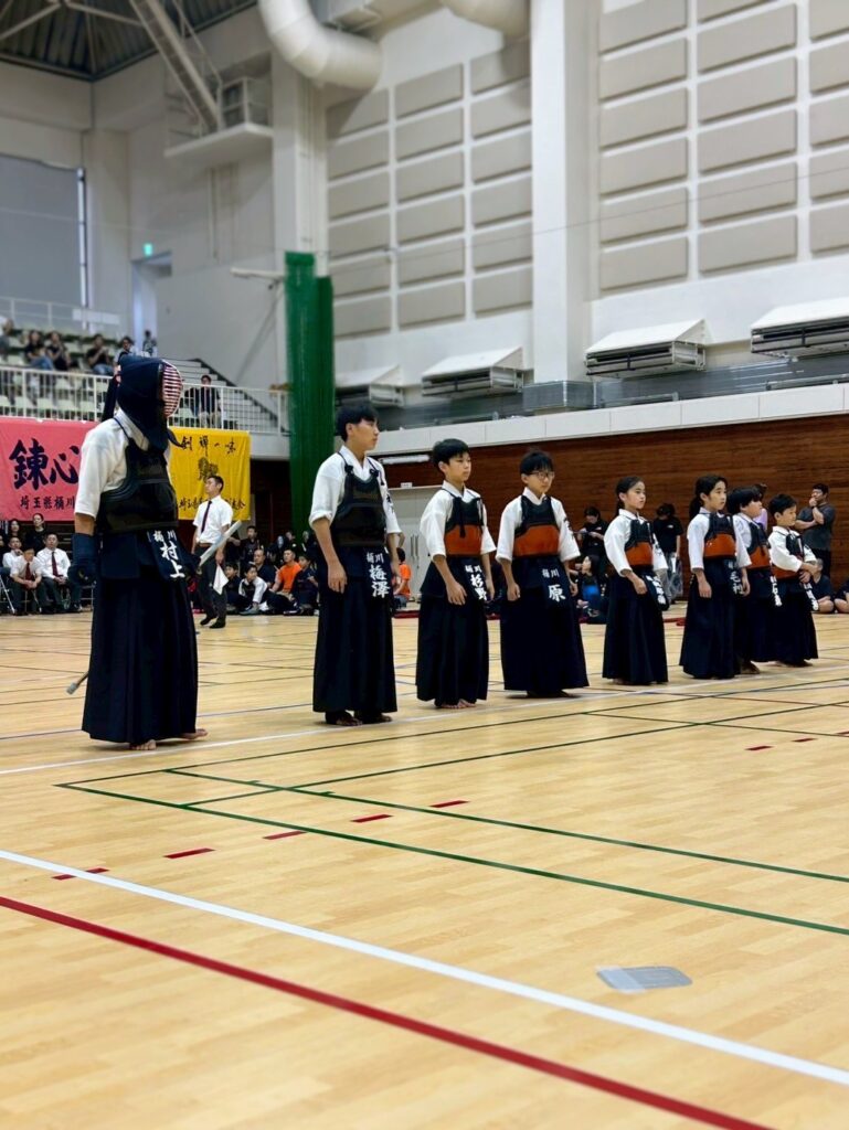 桶川剣友会は4チームリーグでスタート。8名ともに、今試合ではいつも以上にキレがあり思い切った技が冴えてる印象でした。しかし3試合目、相手は今大会で最終的に優勝したチームに惜敗という結果となりました。